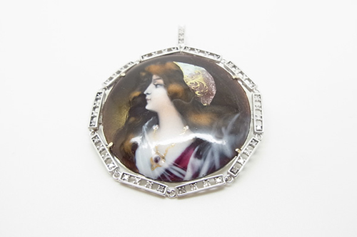 ホワイトゴールドのブレスレットに絵柄を組み合わせて、ペンダントにリフォームいたしました。